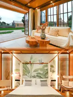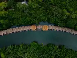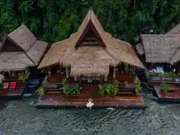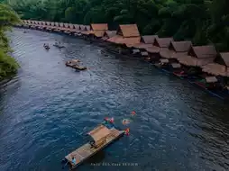 The FloatHouse River Kwai in Kanchanaburi is designed in a contemporary boutique folk style, blending Eastern and local art, making it appear like beautiful houses floating along the River Kwai, with just a few dozen houses in total.