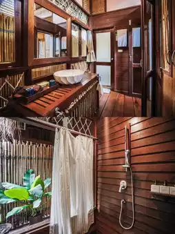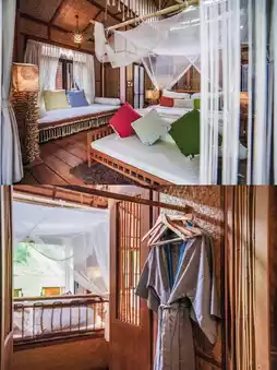The gauze curtains on the big bed give the whole room a romantic holiday atmosphere, which is very consistent with the natural and primitive style of Kanchanaburi.