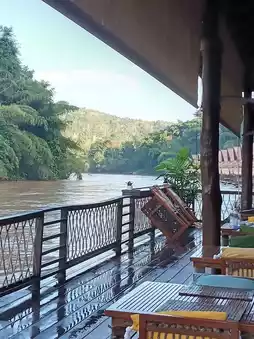 Super chill riverside accommodation with a million-dollar view and atmosphere #Kanchanaburi ⛰🍃💚