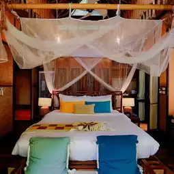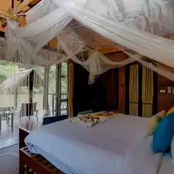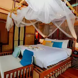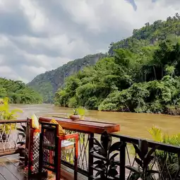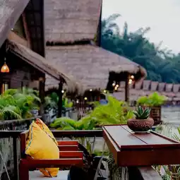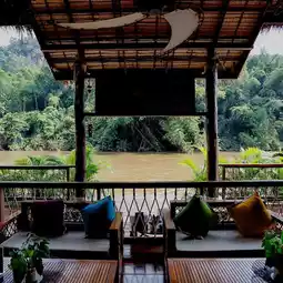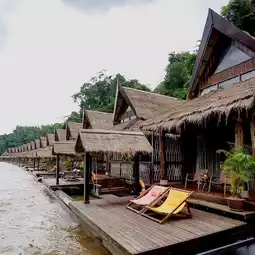 A very luxurious raft house on the banks of the Kwai River, with an amazing atmosphere