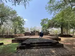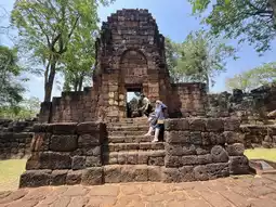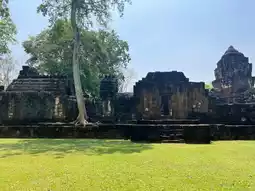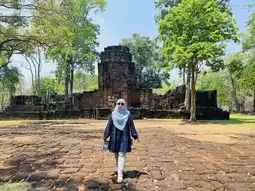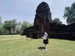 If you are visiting Kanchanaburi, there is another place that I would recommend you to visit. It is a historical tourist attraction in Thailand, the Mueang Sing Historical Park. This historical park is one of Thailand's historical parks, under the care of the Fine Arts Department, Ministry of Culture. It is located on the northern bank of the Khwae Noi River in Sing Subdistrict, Sai Yok District, Kanchanaburi Province, surrounded by long mountain ranges. Originally, this castle was mentioned in the inscription of Prasat Phra Khan as Sri Chai Singha Pura. The city layout is rectangular, with city walls built of laterite, approximately 800 meters wide, referring to the width of the city, about 850 meters long, and the walls are 7 meters high. There are four entrance gates, surrounded by a moat and earthen embankment. Inside the city, there are six ponds.