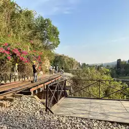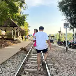 Tham Krasae, part of the Death Railway from Thailand to Myanmar, is a historical site with a railway and scenic photo spots. There is parking available, and as you walk along the path, there are vendors on both sides. When you reach the curved railway by the River Kwai, the view is stunning. Following the railway tracks, there is a separate path leading to Tham Krasae Cave, where an ancient and sacred Buddha statue is enshrined. Walking along the railway over the River Kwai requires caution as it is a thrilling spot, but it offers beautiful views of Kanchanaburi.