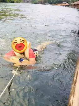 Relaxing in the middle of the river at The FloatHouse River Kwai Resort