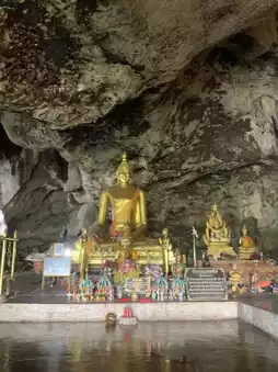 Krasae Cave is located next to the Death Railway, one of the history of World War II. This cave used to be a place for prisoners of war to stay when building the Death Railway from Thailand to Burma. The cave is next to the Kanchanaburi-Namtok railway, a historical railway during World War II. It currently ends at Namtok Railway Station. Inside the cave, there is an open space and a Buddha statue. Looking from the mouth of the cave to the railway, you will see the view of the Kwai Noi River. This area was the most difficult point to build the railway because the route curves along the mountain. But now it is a tourist attraction. Beautiful view, mountains, rivers below. There are also accommodations. If anyone comes to visit, don't forget to visit this place. Don't miss it 😊 #VisitKanchanaburi #DeathRailway #KrasaeCave