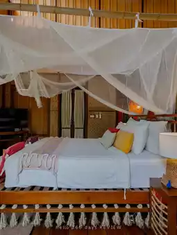The smell of bamboo, thatched roofs, and soft earth-tone fabrics in the room make everything look simple but charming.