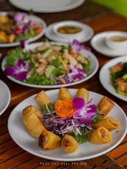The food here is served in large sets, authentic Thai style, with strong flavors and beautifully decorated with edible flowers.