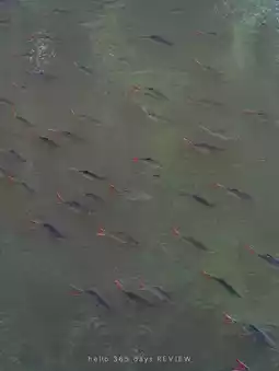 – Feeding fish in the middle of the river (with red-tailed carp swimming everywhere)