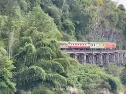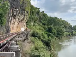 • The railway is built on a wooden bridge along the cliffs and the Kwai Noi River. The view is open and beautiful from every angle.