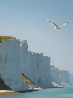 The White Cliffs, known for their striking sheer faces and bright white limestone, stand as a breathtaking natural landmark. Rising boldly above the coastline, these cliffs offer spectacular views of the sea and sky meeting at the horizon.