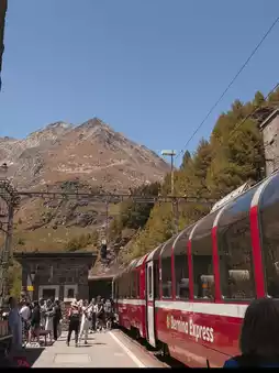The train starts at St. Moritz or Zermatt. You can get on and off at Chur, Andermatt, Brig, etc. along the way. All seats are reserved, so advance reservations are required.