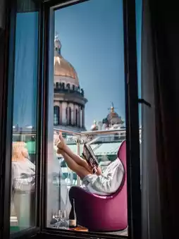 St. Isaac's Cathedral: A landmark of St. Petersburg and one of the world's four major cathedrals. Photo 3 was taken at Gorohovaya Street No. 3; Photos 4 and 5 were taken at the SO Sofitel Hotel, where the guest rooms, café, and terrace offer excellent photo spots.