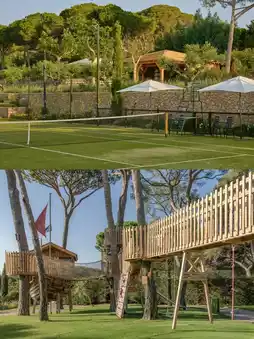 The hotel boasts a Valmont spa, an outdoor swimming pool, a 10-hectare park, and a children's villa, making it an ideal place to enjoy unforgettable family time.