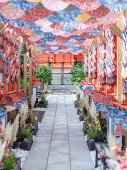 The corridor decorations are decorated with votive plaques, wind chimes, fans, Teru Teru Bozu.....various decorations for each season, and I heard that they have been replaced with fans and flower water basins that give off a Japanese atmosphere, so I went there right away.