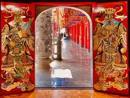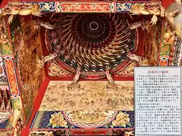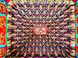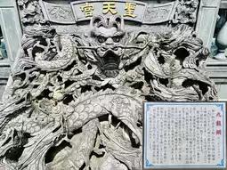 The intricately carved nine-dragon net and nine-dragon pillars, carved from a single piece of rock, are truly impressive. The main hall's tai chi ceiling is said to swirl and represent the origin of the universe, representing yin and yang.