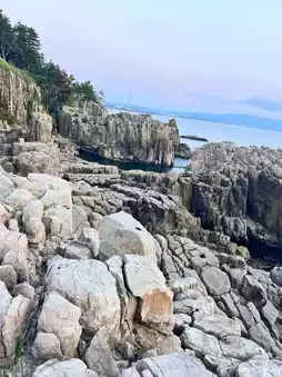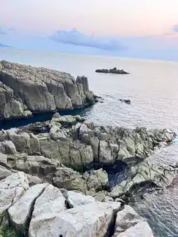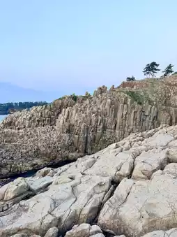 Sakai City, Fukui Prefecture. Tojinbo is a designated natural monument and scenic spot of the country. It is a huge columnar joint that stretches for about 1 km along the coastline in northern Fukui Prefecture. It is one of Fukui's top tourist spots and is also famous as a location for filming dramas. You can see the beautiful Sea of Japan and the impressive cliffs. The highest cliff in Tojinbo, called Oike, is 25 meters high, and there is also a place called Senjojiki where you can go down to the shore. The sun set at 6:20 on this day, so this time I went to Tojinbo, which I had always wanted to go to, to see the sunset. It was a weekday, but there were quite a few people there. There were a few shops, so you can enjoy gourmet food and shopping, but the shops were closed when I went. I was simply moved by the magnificent view created by nature. The sunset was hidden by clouds and I couldn't see it, but it's a spot I would like you to visit at least once. However, when I looked down at the sea from the cliff, my legs were quite shaking. There are no handrails, so if you slip, it will be a big problem, so please be careful when walking. - - - - - - - - - - - - - - - - - - - - - - - - - - - - - - - - - - - 📍Spot name: Tojinbo Tojinbo, Yasushima, Mikuni-cho, Sakai-shi, Fukui Prefecture 🚃From Tokyo, take the Hokuriku Shinkansen for about 3 hours, then take the Keifuku bus from Awara Onsen Station to Tojinbo for about 40 minutes
