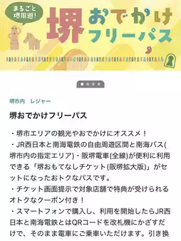 In other words, this electronic “Sakai One-Day Unlimited Ride Ticket” combined with the “Sakai Hospitality Ticket Hankai Expanded Version” is enough for a one-day trip from Osaka City to Sakai City.