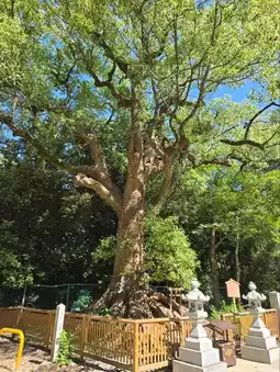If you stop by the large camphor tree "Neagari-san," you will be able to receive the blessings of prosperity in business and improved fortunes, as the "value (roots)" will rise.