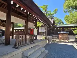 The main hall is called Otori-zukuri, and it maintains the ancient style of "gabled-roofed ... 1900 years ago, when everyone was mourning the death of Emperor Yamato Takeru, his spirit turned into a swan and flew away from his tomb, landing at Kotobikihara in Yamato (now Kotobikihara Shiratori Mausoleum) and Furuichi in Kawachi Province (now Furuichi Shiratori Mausoleum Kofun). At the place where he landed, a shrine was built and Emperor Yamato Takeru enshrined.