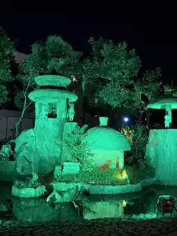 In the evening, I returned to Mizuki Shigeru Road. The street lights lit up, transforming into "Yokai Night." Each streetlight projected a different yokai, and the atmosphere shifted from the cuteness of daytime to mystery. The theme music playing along the way, along with the occasional catwoman's laughter, made me feel like I was transported to the world of anime. Under the night sky, Kitaro and his friends quietly guarded the town, creating a dreamy and heartwarming atmosphere.