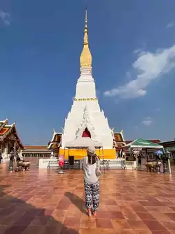 It is a sacred pagoda of Sakon Nakhon people. It is a pagoda with a white pagoda and a gold umbrella. Inside, there are footprints of many Buddhas.