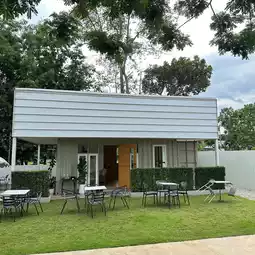 ☕🏡 Monhome Café | Sakon Nakhon A minimalist café in warm tones, white and brown, simply decorated with style. There are both air-conditioned zones and shady lawns. Suitable for chilling out, working or taking beautiful photos in every corner.