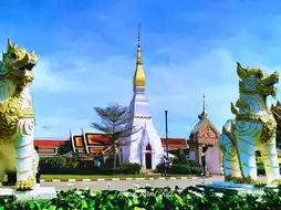 #TravelChat If you have the opportunity to visit Sakon Nakhon and are a spiritual devotee, we recommend paying respects and making offerings to the sacred objects at Wat Phra That Choeng Chum Worawihan. This temple has long been a symbol of Sakon Nakhon. It houses Phra That Choeng Chum, a chedi containing the footprints of four Buddhas, and also houses Luang Pho Ong Saen, the city's most revered Buddha image.