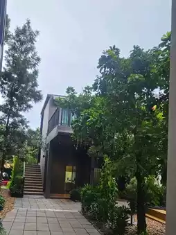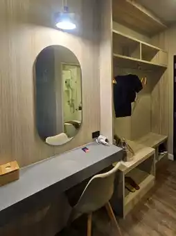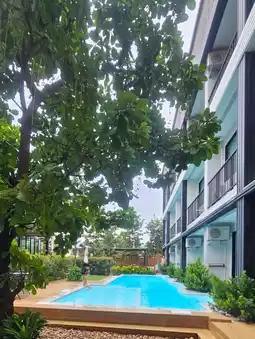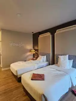 Phusakolville is a modern hotel surrounded by a peaceful and friendly atmosphere. The building is designed in a modern, airy style, with private balconies in every room. The rooms are clean and simply decorated, yet fully equipped with amenities. The outdoor pool is a highlight, perfect for cooling off and taking beautiful photos. The surrounding area is also filled with relaxation areas, including lounge chairs and a small, well-arranged garden. At night, the warm lighting creates a romantic atmosphere.