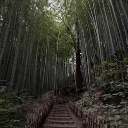 A road surrounded by beautiful bamboo groves that leads to samurai residences.
