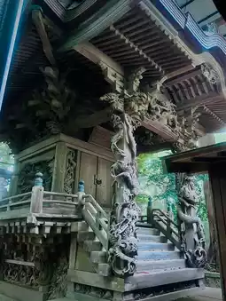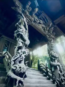 Sakizaki Washi Shrine, tucked away in Sakura City, Chiba Prefecture, is a hidden gem filled with history and art. The charm of this shrine can be summed up in one word: the impressive group of sculptures that decorate the main hall. In particular, the powerfully carved ascending and descending dragons captivate visitors with their power and sense of life. These dragon sculptures symbolize divine power and rebirth, and infuse the entire shrine with lively energy. The sculptures in the main hall are not just beautiful. The story depicted on all four sides is based on the theme of the slaying of the demons of Mt. Oe, and by following the story that continues from the east to the north, west, and south (front), you can experience the depth of Japanese tradition and culture. It truly serves as a place to inherit not only faith, but also history and culture. Sakizaki Washi Shrine hides its beauty in the silence, providing visitors with peace of mind and artistic impressions. Because it is not easy to access, it is rare to encounter other worshippers no matter when you visit, making it a truly "hidden gem."
