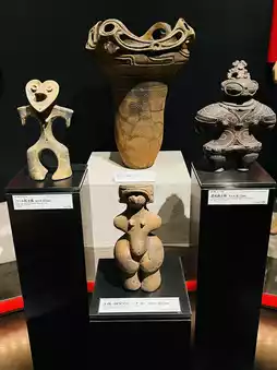 The Jomon period clay figurines are a must-see. It's astonishing to think that these generous and artistic figurines were made in Japan over 6,000 years ago. Despite their different ages, many of these figurines are related to pregnancy, childbirth, breastfeeding, and child-rearing. The Jomon period exhibits are endlessly fascinating, featuring figurines with different facial features and shapes compared to modern Japanese people.