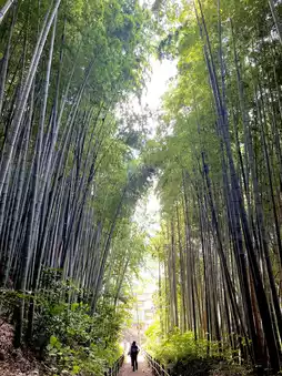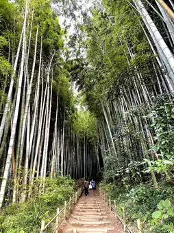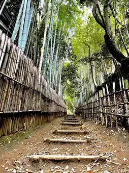 This ancient path surrounded by bamboo groves evokes the scenery of the Edo period.