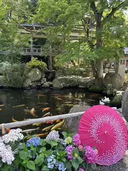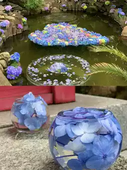 When I visited, I wasn't able to see the hydrangeas (water Chinese) floating in the pond, but I took a photo of it from a few years ago.