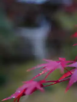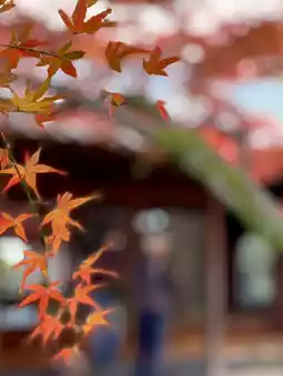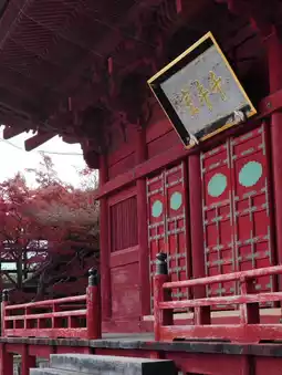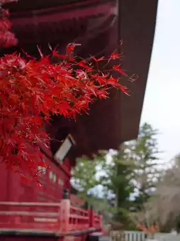 The bright red Thousand-Armed Kannon Hall and the bright red maple leaves.