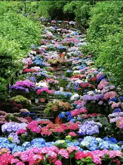 At Hasedera Temple, 200 hydrangea pots are decorated on the stairs, allowing you to enjoy the colorful and gorgeous colors🥰💐🌈You can walk up these stairs, so it's fun to walk up them while enjoying the colorful hydrangeas💕