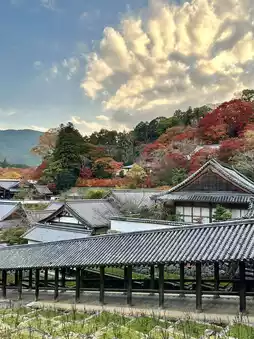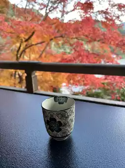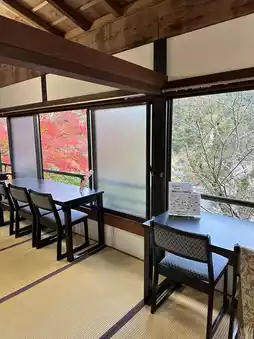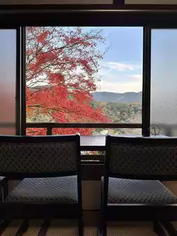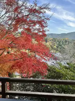 It was a beautiful spot with a view of the mountains and the temple grounds adorned with red and yellow maple leaves.
