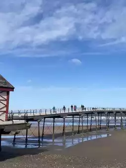 Walking along the wooden planks, I admired the gentle creaking beneath my feet, a reminder of the pier’s rich history. The view back towards the cliffs was equally stunning, with the famous Saltburn Cliff Tramway adding to the picturesque charm of the town. Seagulls soared overhead, and the cool sea breeze carried the scent of salt and fish and chips from nearby stalls.