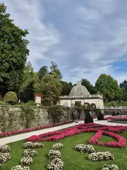 Mirabell Gardens, with its symmetrical flowerbeds, statues, and fountains, creates a signature Salzburg landscape. Hohensalzburg Fortress, seen from the edge of the gardens, offers a picturesque backdrop. It's also a well-known filming location for the film The Sound of Music. ๐บโฒ๐