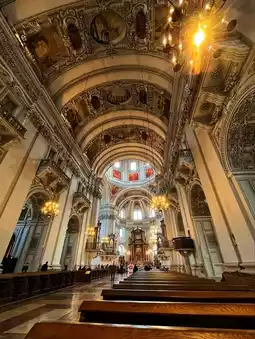 Step inside, and you’ll be greeted by ornate stucco details, magnificent frescoes, and a serene ambiance that carries centuries of spiritual devotion. It’s here that Wolfgang Amadeus Mozart was baptized, forever linking the cathedral to Salzburg’s musical legacy. 🎶