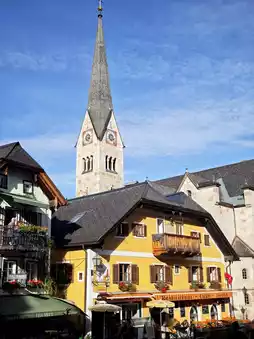 The lake is as clear as a sapphire, reflecting the pointed church steeple and scattered wooden houses. Behind it, the Dachstein Mountains are wrapped in mist. Taking a few steps feels like stepping into a picture book📖! No need to specifically look for photo spots; just standing by the lake, the wind carries an "unreal gentleness," and even breathing feels like it might disturb this painting~