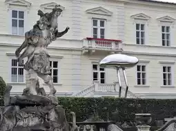 The spectacle at the Pegasus Fountain was the dramatic high point of the evening. The water jets were rigged with colored lights and theatrical smoke, making the fountain appear to bubble with a sickly, unnatural life. A main performer, playing a doomed Countess, appeared on the central staircase in a soaking wet, crimson gown, giving a silent, pantomimed performance of drowning and despair. The sound of amplified, distorted opera music echoing off the surrounding stonework was overwhelming. The sheer scale and theatricality of this scene, using the fountain as both stage and prop, was nothing short of brilliant and provided a truly beautiful, yet deeply unsettling, focal point for the haunting.
