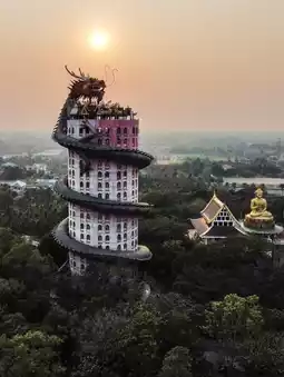40 kilometers from the center of Bangkok is one of the most incredible buildings that I have seen in my life - a house that is wrapped around a huge dragon. This building looks just incredible and immediately amazes the imagination.