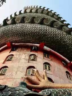 This place is called Wat Samphran and there is a Buddhist temple inside the dragon. And in the area around you can find many interesting statues and unusual buildings.