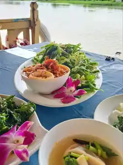 The outdoor area by the Tha Chin River offers a cool breeze, a truly relaxing experience, and a lawn for kids to play in. The river view is stunning, making you want to stay longer.