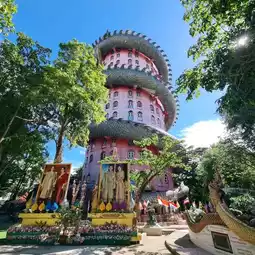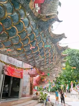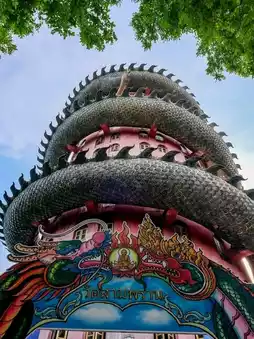 A beautiful temple just over an hour from Bangkok, a comfortable drive away. The highlight of this temple is the impressive pink building adorned with a giant dragon. You can climb inside, through a spiral staircase leading to the top. The cool breeze at the top offers a panoramic 360° view.