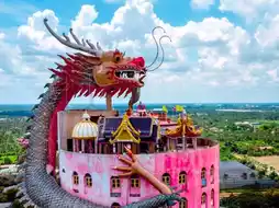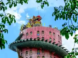 - Dragon Tower: A tall pink cylindrical building wrapped by a dragon, a popular photo spot.