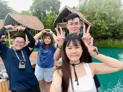 The entire man-made setting is great for photos. We had pre-booked through TRIP, which gave us a 300 THB credit per person. However, since we had already eaten at Thonburi Market beforehand, we were all stuffed. So, we only ordered drinks and took photos. Luckily, the weather was on our side.