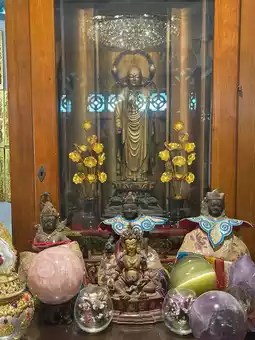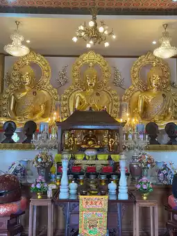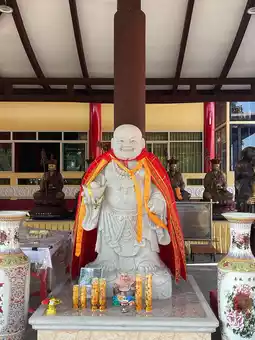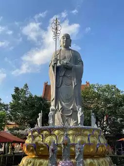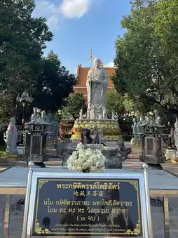 The highlight of the temple is the statue of Phra Ksitigarbha Bodhisattva, carved from granite and standing 13.99 meters tall, imported from China. It is accompanied by sculptures of the entourage of King Yama paying homage to Phra Ksitigarbha.
