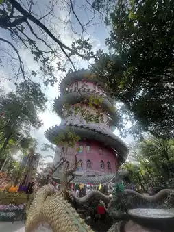 🐲This temple is outstanding in its appearance. It is a large dragon wrapped around a pink building. Inside, there is a Buddha statue that you can shake. 🙏🏻 Most people like to come here to take pictures because the temple is beautiful. The outside is decorated with various trees.