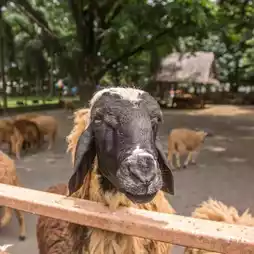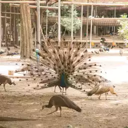Peacock Garden, Deer & Sheep Samphran, a zoo near Bangkok. There are a lot of peacocks here. You can walk into the cage with hundreds of peacocks. There are also a lot of Australian sheep here. They eat very well. There are deer, turtles, rabbits and koi fish. The kids had a lot of fun feeding them. Mom went bankrupt on the cost of animal food. You can buy it at many places, both at the ticket booth and the animal cages. The place is spacious. You can walk in a circle. There are a lot of trees, it is shady, and there is a very large pond. The wind is cool and comfortable. There is a lawn with children's toys, a beautiful photo corner and free bicycles to borrow. If you take it, just return it to the original place. There is a sink at the exit. It is very convenient. The entrance fee is 80 baht for adults and 40 baht for children (children under 90 cm. are free). Animal food is 10-20 baht. There is bread, morning glory, dried straw and pellets. Open daily from 8:00 a.m. to 5:30 p.m.