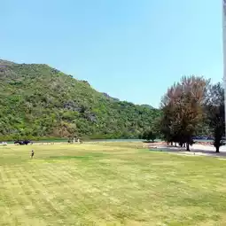 The hotel area has a fairly wide lawn